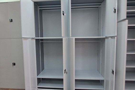 Стеллажи с дверями позволяют надёжно защитить костюмы от пыли, света и внешних воздействий. Закрытые секции помогают поддерживать порядок и аккуратный внешний вид помещения, сохраняя ткани в отличном состоянии.